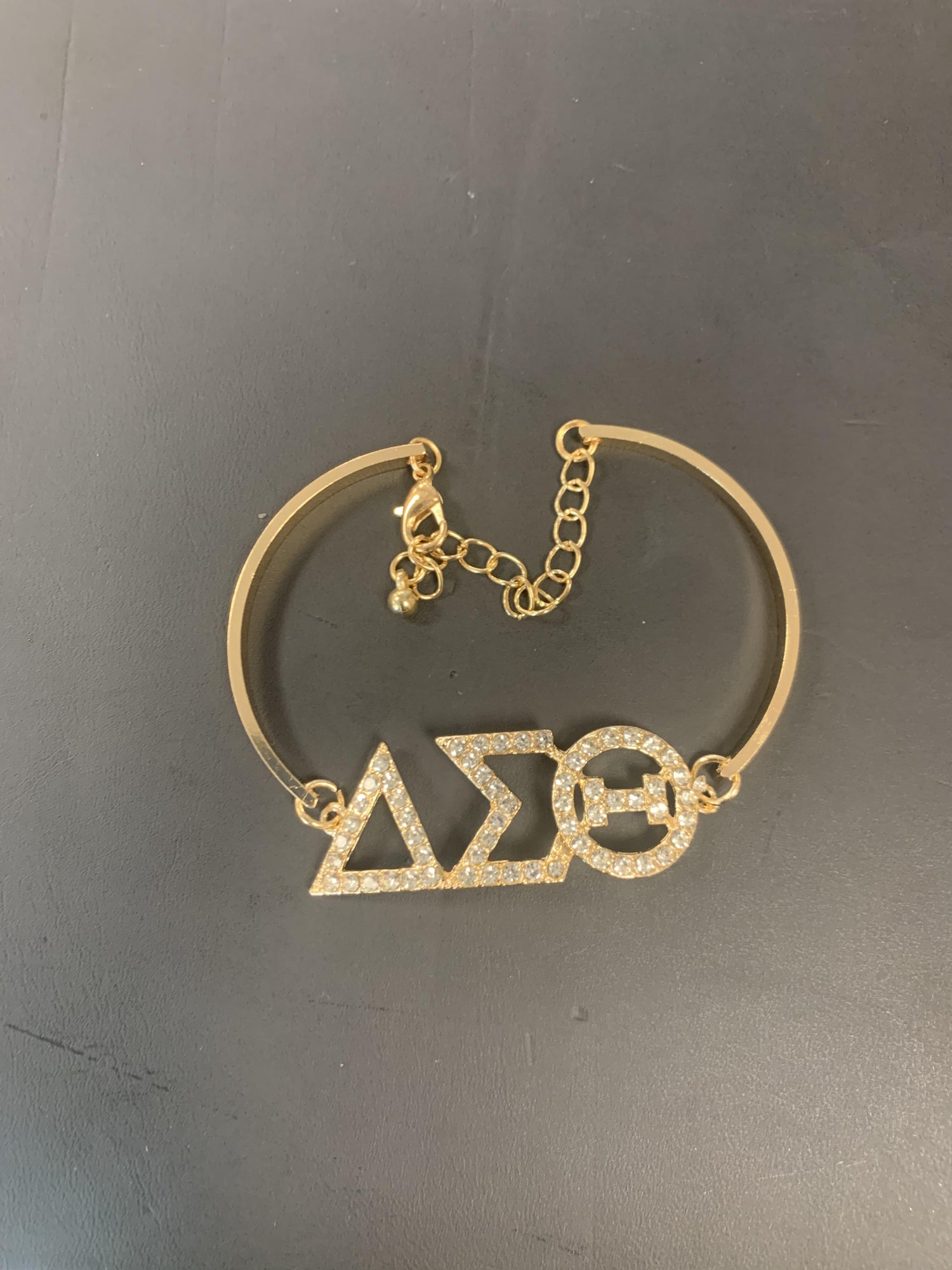 Decorate your wrist with this shiny gold bracelet, with small crystals inside of the organziation's letters. Each stone is hand set in to heavy duty brass which is electroplated in gold or silver for longer wear. This bracelet also features an adjustable clasp, making sizing a breeze.