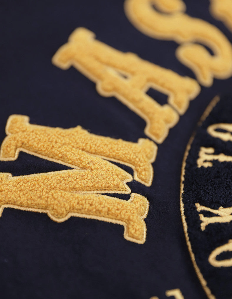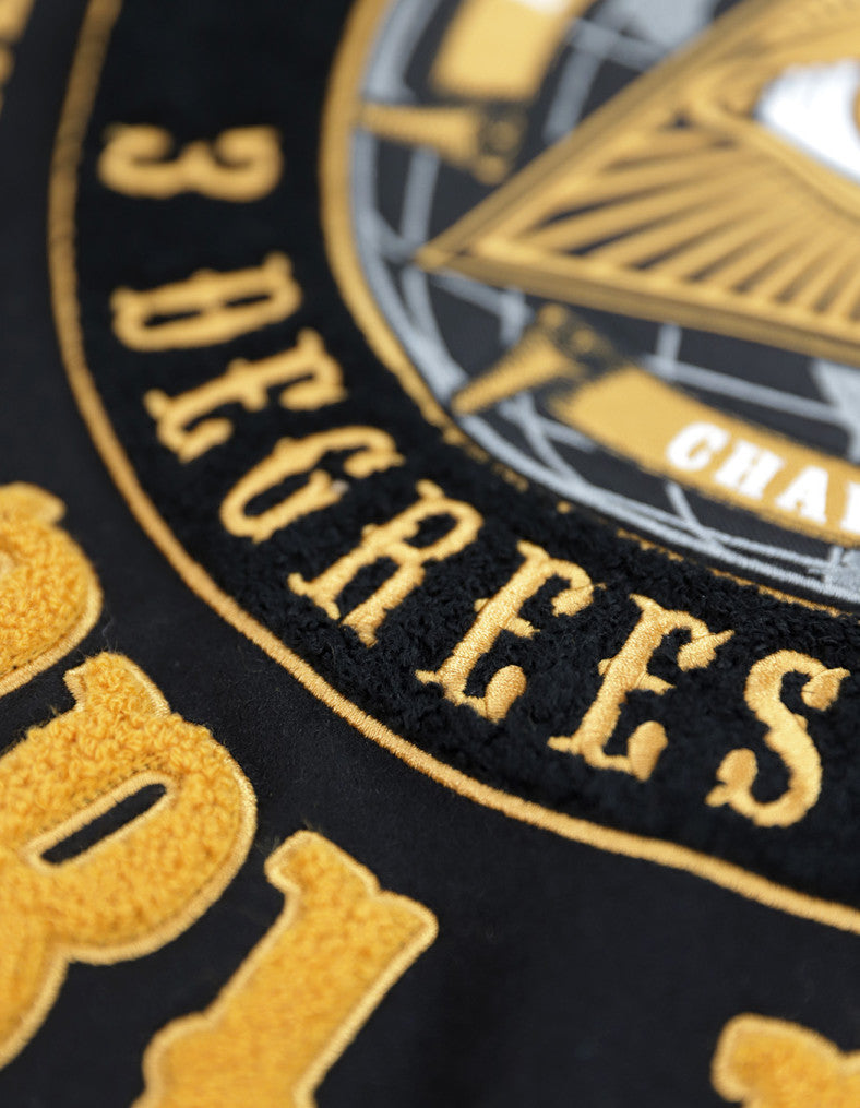 Hold everything... this jacket has it all! Available for Greek organizations and Masons, the wool/viscose body is heavy enough for those winter breezes. The PU/viscose sleeves have the look of leather but are lighter and easy to care for. The jacket is fully lined inside and the outside... well, that's fully decorated. A combination of chenille lettering and expert embroidery make this one a standout. The ribbed collar and cuffs add comfort and flair. This jacket is dry clean only. You just can't lose with this stunning jacket!